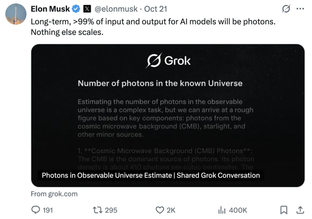 從長遠來看,人工智能模型的輸入和輸出中 99% 以上都將是光子。