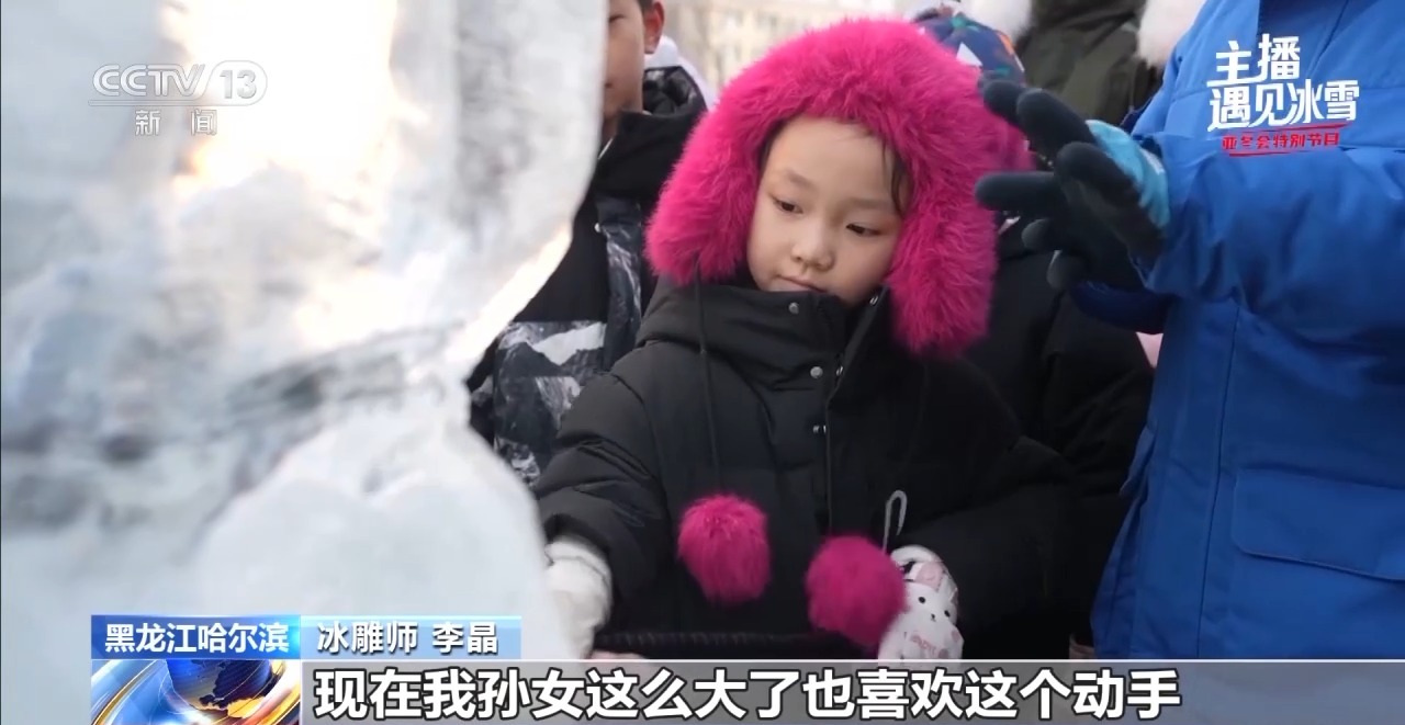 冰雕師 李晶:我兒子像孫女這么大點我就帶他來,現在我孫女這么大了也喜歡動手,所以把她帶過來。