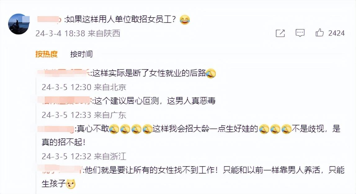 網友:如果這樣用人單位敢招女員工?