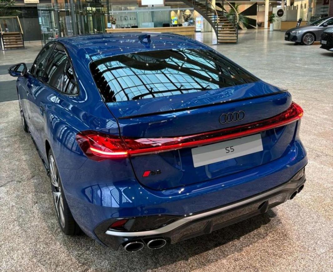 車身側面,溜背式的造型是 A5 的一大特色,優美的弧線從車頭一直延伸至車尾,配合大尺寸的輪轂,展現出強烈的運動氣息。車尾部分,簡潔而富有層次感,全新設計的尾燈組在點亮后辨識度極高,雙邊共兩出的排氣布局則進一步彰顯了其運動性能。