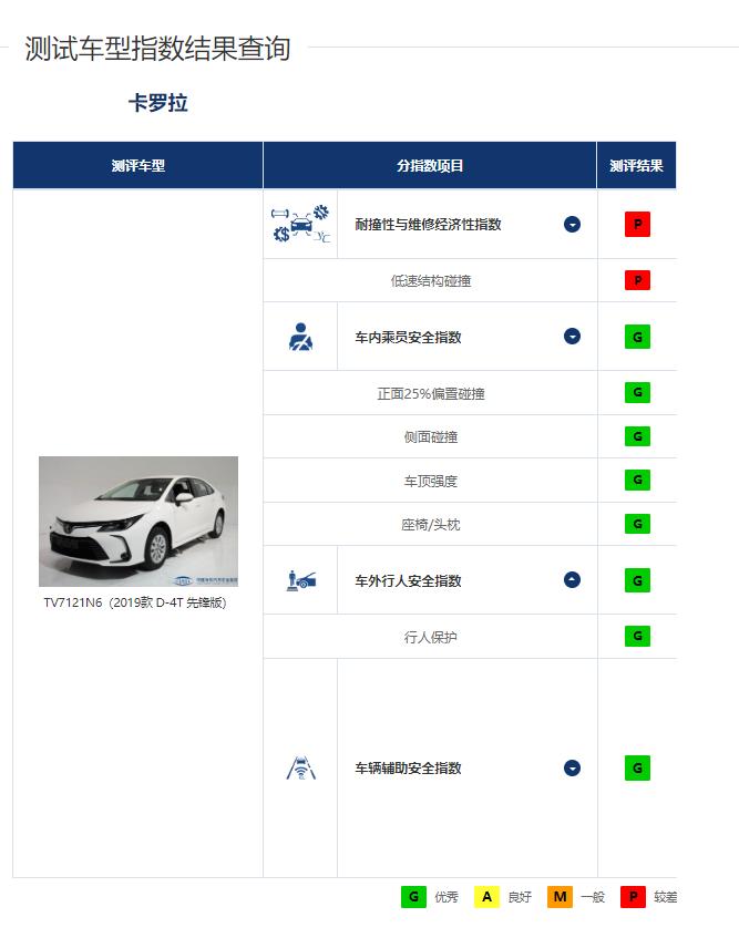 此外,在被動安全性方面,全車標配8個安全氣囊(最低配6個),關鍵部位如a柱,b柱配置高強度熱成型鋼材。2024年9月,中保研關于十二代卡羅拉的碰撞測試成績出爐,卡羅拉在車內成員安全指數(shù)、車外行人安全指數(shù)、車輛輔助安全指數(shù)等三項指數(shù)均獲得“G”(優(yōu)秀)評價。其中,在反映車身架構的車內安全指數(shù)方面,無論是正面25%偏置碰撞、側面碰撞、車頂強度、座椅/頭枕等子項目中均無失分項。