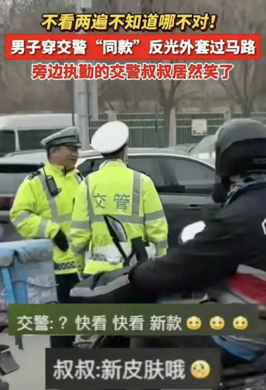 這是什么神仙梗?交警被路人同款反光外套“逗笑”