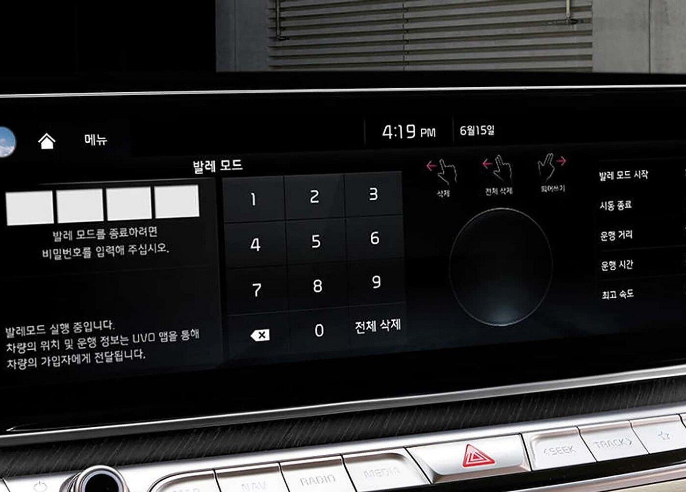 來到內(nèi)飾部分,起亞K9采用了較為傳統(tǒng)的布局,可以看到中控懸浮式的屏幕,整個中控臺設(shè)置了較多的實體按鍵,空調(diào)出風(fēng)口的中間還鑲嵌了一塊鐘表,也是很多豪華車型比較常見的設(shè)計。