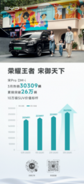 截至目前,宋Pro DM-i榮耀版經(jīng)歷了上市以來首個完整銷售月,并交出了一份優(yōu)異的成績單——3月熱銷30309輛,環(huán)比增長256.6%,累銷超過26萬輛,以絕對優(yōu)勢領跑A級SUV市場!如果說,此前宋Pro DM-i與燃油車進行拉鋸戰(zhàn),那么隨著宋Pro DM-i榮耀版的推出,其將向對手發(fā)起全面總攻,從燃油SUV顛覆者轉變?yōu)槿加蚐UV的替代者!