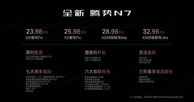 值得一提的是,即刻下定全新騰勢N7,可享定金2000元抵扣車輛尾款10000元上市權益。同時,為感恩回饋老用戶,騰勢汽車不僅推出了至高50000元的置換補貼,相當于0元換新,而且還有非常給力和周到的權益,讓老用戶買車更放心、換車更開心、用車更舒心。