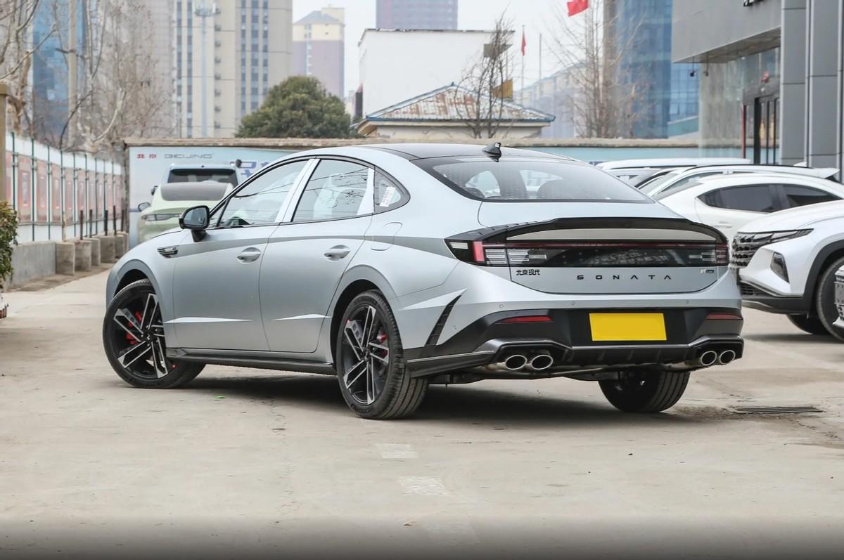 車尾區(qū)域的設(shè)計(jì)充斥了索納塔一貫以來(lái)的高辨識(shí)度,尾門(mén)頂部區(qū)域在側(cè)面切線和頂部溜面的碰撞組合下形成了弧形的微翹鴨尾,同時(shí)專門(mén)搭配的黑色飾邊也進(jìn)行了著重渲染,貫穿式的尾燈組擁有相對(duì)方正的燈腔輪廓,內(nèi)部則采用了分層的短橫條燈帶組合,點(diǎn)亮后在層次感上大幅提升,側(cè)面的后肩線逐步下溜至尾部的后包圍區(qū)域,并切割出尾門(mén)的邊緣輪廓,后包圍采用黑色的組件覆蓋,兩側(cè)區(qū)域利用鍍鉻飾條單獨(dú)勾勒代替了傳統(tǒng)的尾喉結(jié)構(gòu),在運(yùn)動(dòng)感營(yíng)造上也算動(dòng)感。