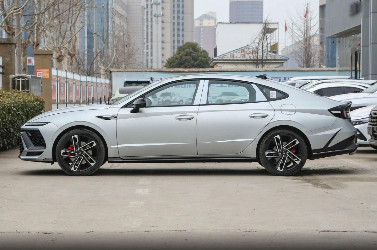 第十一代索納塔從多方面進(jìn)行了提升,首先在外觀層面,運(yùn)動(dòng)化作為整車主打的核心理念,在多個(gè)細(xì)節(jié)增加了轎跑化的設(shè)計(jì)元素,前臉傳統(tǒng)的鯰魚(yú)式中網(wǎng)在邊角處進(jìn)行了銳利化處理,內(nèi)部采用黑色的魚(yú)鱗狀飾件,相對(duì)鋒利的邊角增加了視覺(jué)上的犀利感,前溜式的機(jī)蓋前端配有貫穿式的燈帶環(huán)繞,同時(shí)分體遠(yuǎn)近光燈則與前包圍兩側(cè)的黑色組件區(qū)域組合,并增加了疊層式的分層格柵,前唇邊略微帶有微凸的邊緣結(jié)構(gòu),整體較多的橫向元素增加也為車頭帶來(lái)了寬體觀感。