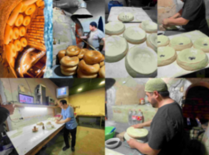 撒馬爾罕有夜生活,有各種符合口味的美食,但我們選擇去一家傳統的制“馕”作坊參觀。天蒙蒙亮,全家就開始了一天的工作。有揉面的,有造型的,有烘烤的,有搬運的。