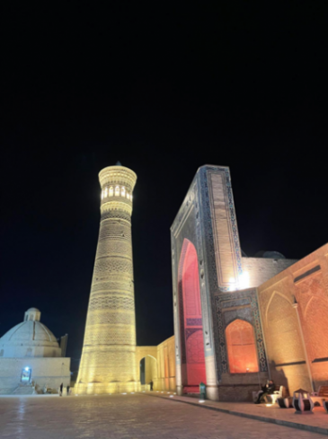 城市中最醒目的打卡點是卡揚宣禮塔。據說當年成吉思汗攻下布哈拉的時候,抬頭看了看這座46.5m的塔,帽子就從頭上掉了下去。他彎腰撿起帽子,對旁邊人說:“這是布哈拉唯一能讓我鞠躬的建筑了。”這個故事倒是和蒙古鐵騎踏平布哈拉,反復蹂躪花拉子模的慘烈故事形成了鮮明的對比。
