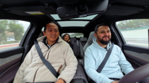 我和谷岳邀請他試駕護衛艦07,他高興的坐在了駕駛席上。仔細看了看車內的設計和細節,他表示非常喜歡護衛艦07的設計。盡管同樣是雙電機版本,他還是期望能開起來跑一跑。 深踩油門之后,發自內心的笑了:“過去只有法拉利、保時捷這樣的車才能提供如此強悍的動力,現在混合動力車型竟然可以輕松實現。”我補充說,:“而且不到十分之一的價格就可以實現呦!”