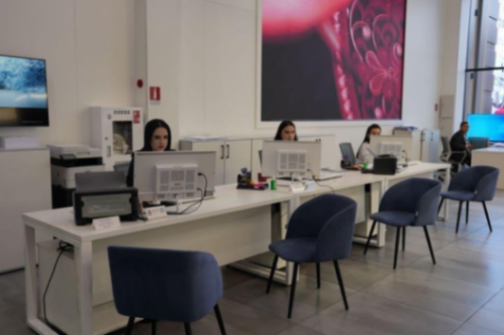 一樓有接待大廳、看車大廳、提車慶祝區域、維修車間。車間帶有12個舉升機的工位,每個工位上都有獨立的照明光源。二樓的接待區更為寬闊:舒適的閱讀區除了書籍、沙發,還有高級按摩椅。兒童娛樂區在透明的落地窗旁邊,空間大且光線明亮??Х劝膳_在定制展示區的旁邊,這里的咖啡和甜點品質在整個塔什干都有信心排第一名。展示區里擺著幾張重要的照片,是王傳福王老板來店里視察工作時候的留影。