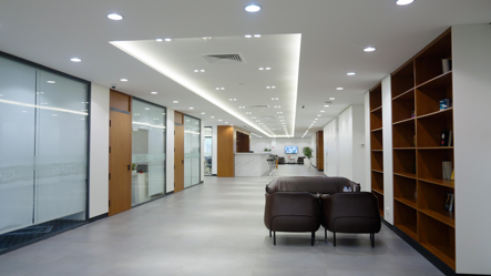 接待區還包括祈禱室、培訓室。在維修區的上方是玻璃落地窗,休息的時候可以在二樓看到車間里的工作狀況。沙發座上方的監視器還可以顯示每個工位的工作細節。