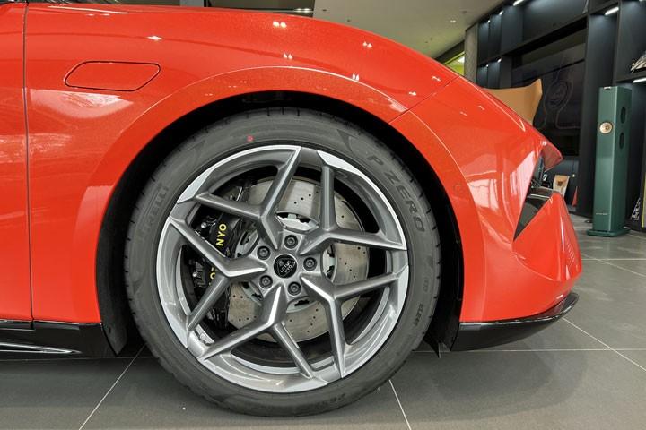 Emeya 擁有前通風(fēng)孔鋁制六活塞剎車卡鉗,甚至還有 10 活塞的碳陶復(fù)合剎車系統(tǒng)可選,僅 10 萬人民幣的選配價格,對比意大利超跑廠絕對不貴。輪圈樣式則采用細(xì)條星式設(shè)計,21 吋輪圈與整車比例充斥著力量感與速度感,匹配倍耐力訂制高性能 P ZERO 輪胎,前輪的規(guī)格為 265/40 R21,后輪的規(guī)格為 305/35 R21,也可以選配至 22 吋鍛造輪圈。